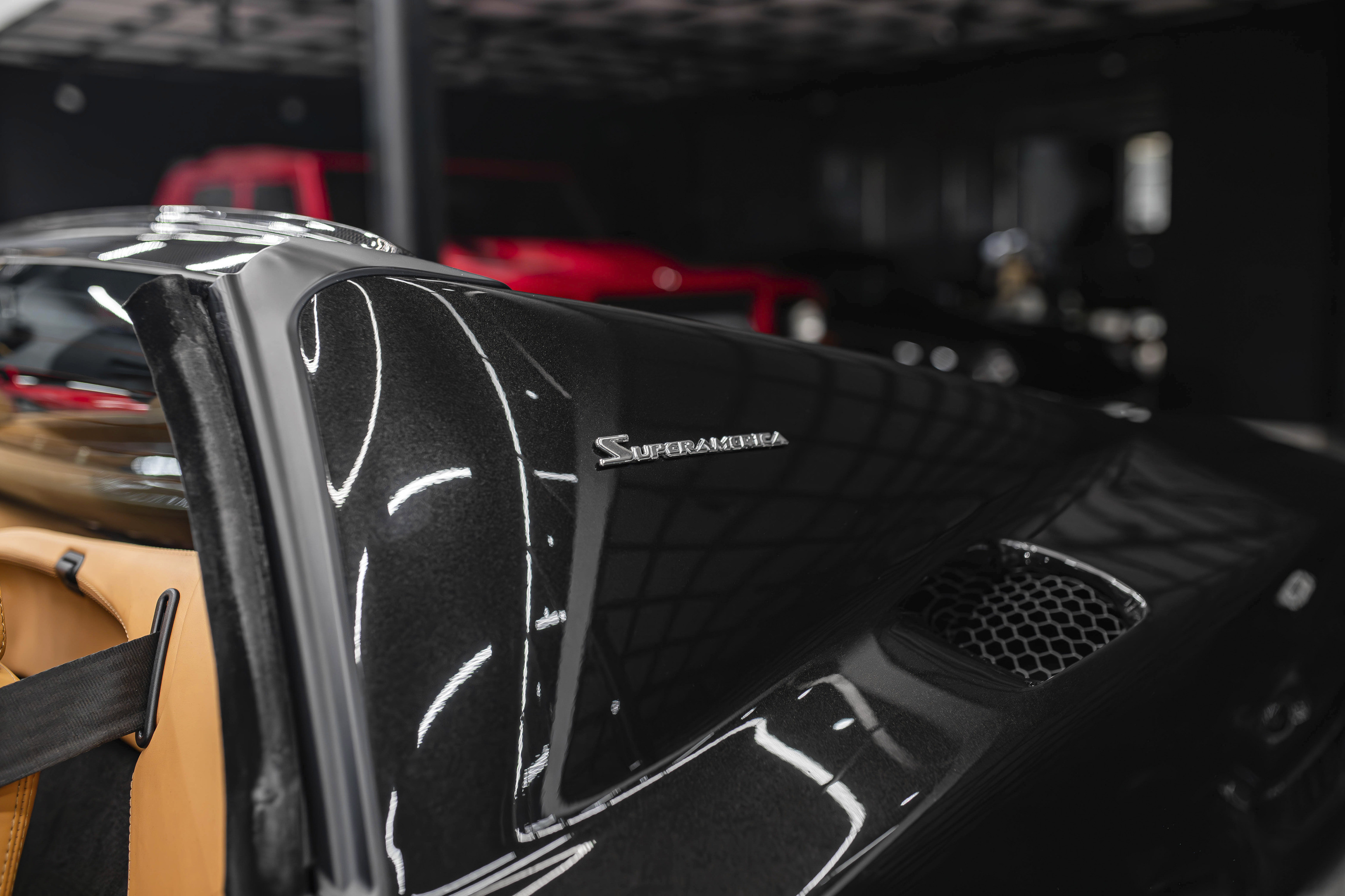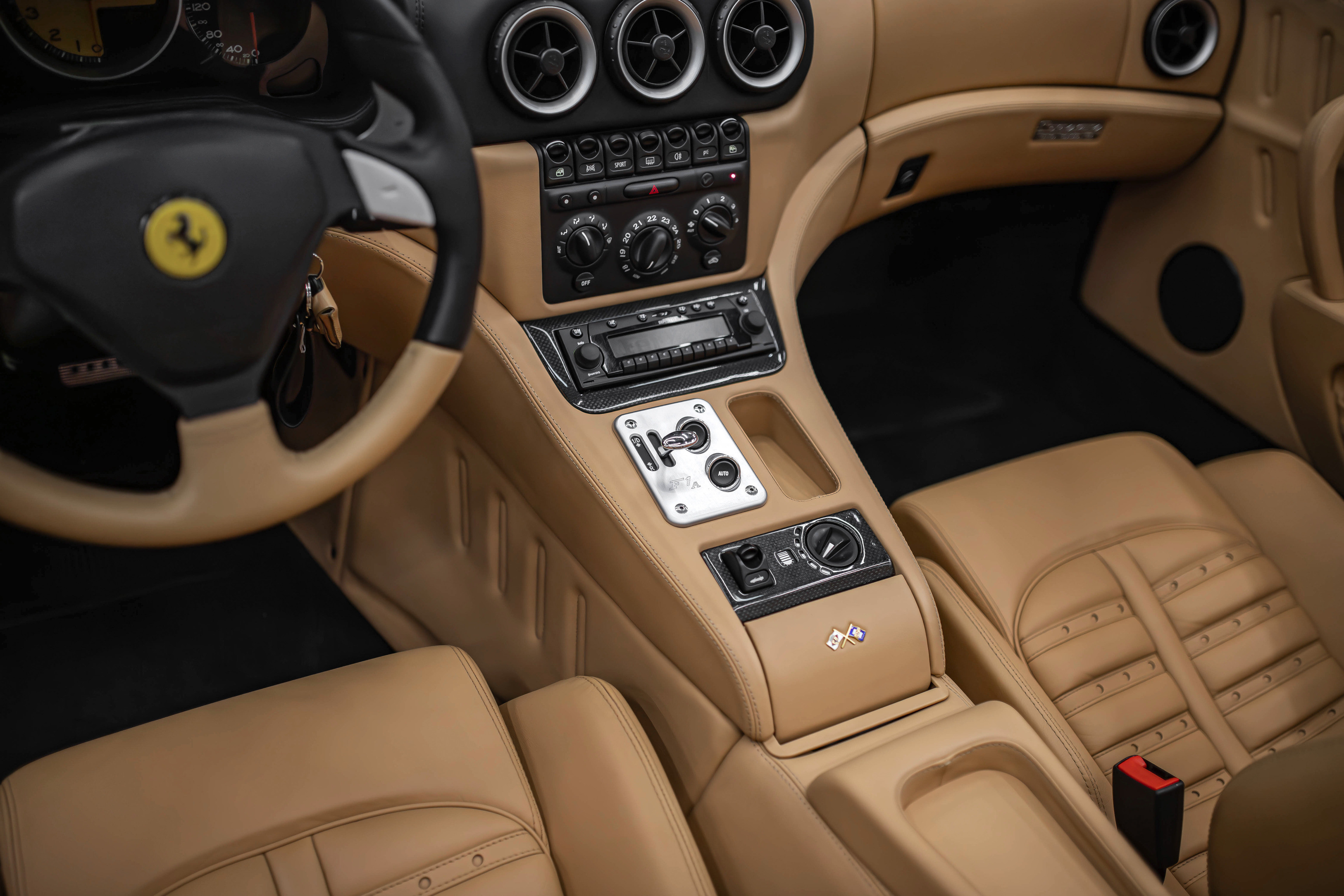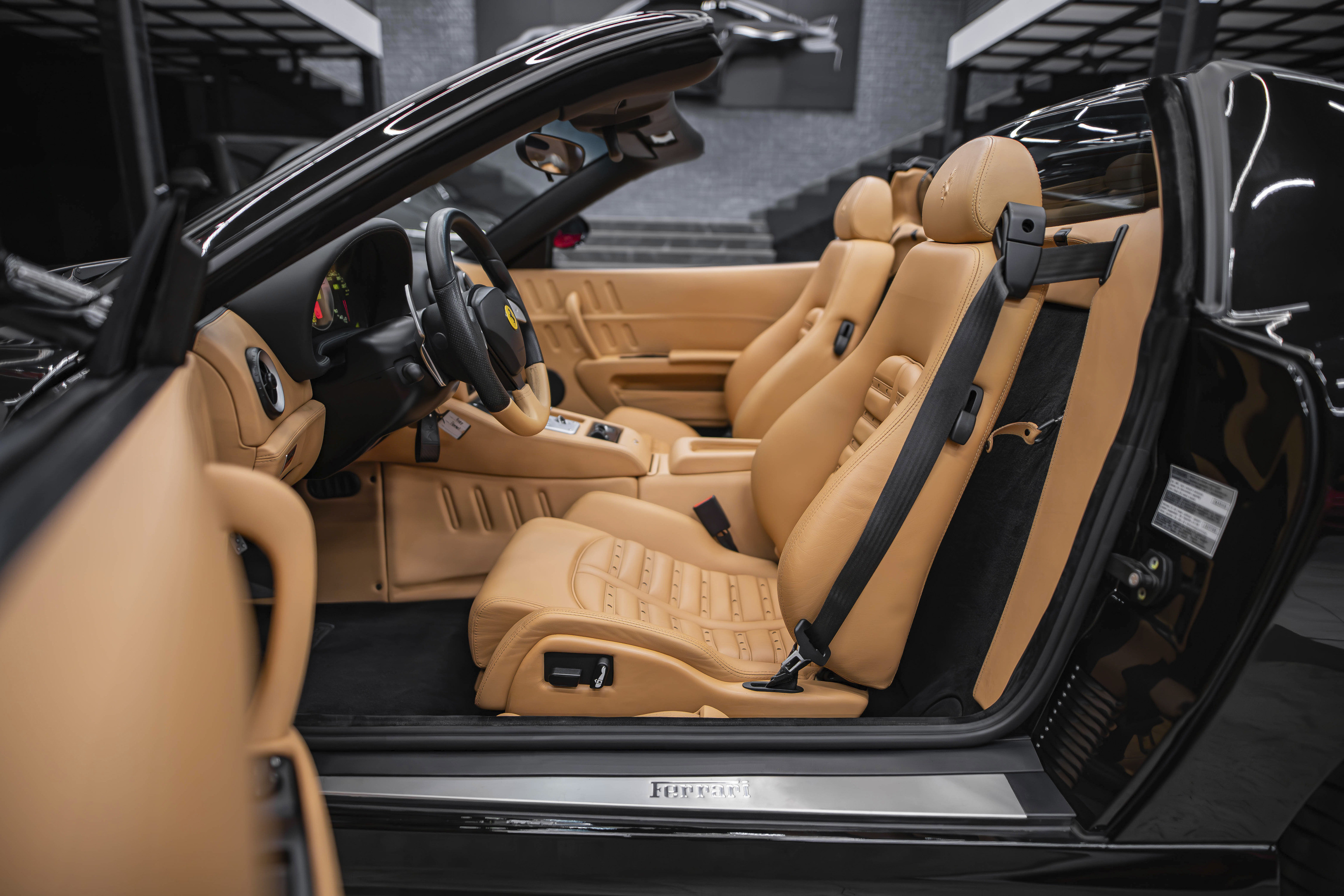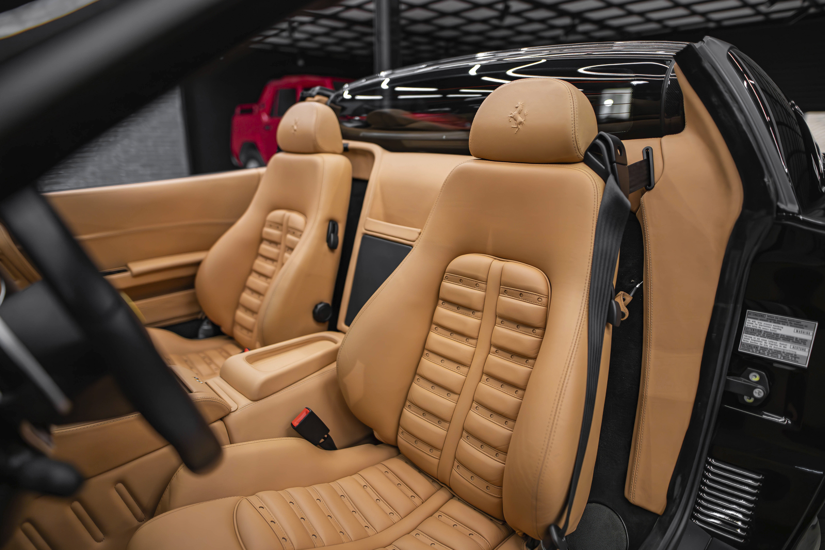 Итак, ключевой особенностью Феррари 575 Суперамерика стала прозрачная стеклянная крыша Г-образной формы, которая с помощью электропривода поворачивается на 180 градусов и ложиться обратной стороной на крышку багажника. А заднее вертикальное окошко, защищающее салон от турбулентных завихрений, затем автоматически возвращается в исходное поднятое положение. Вся процедура занимает 10,0 секунд.