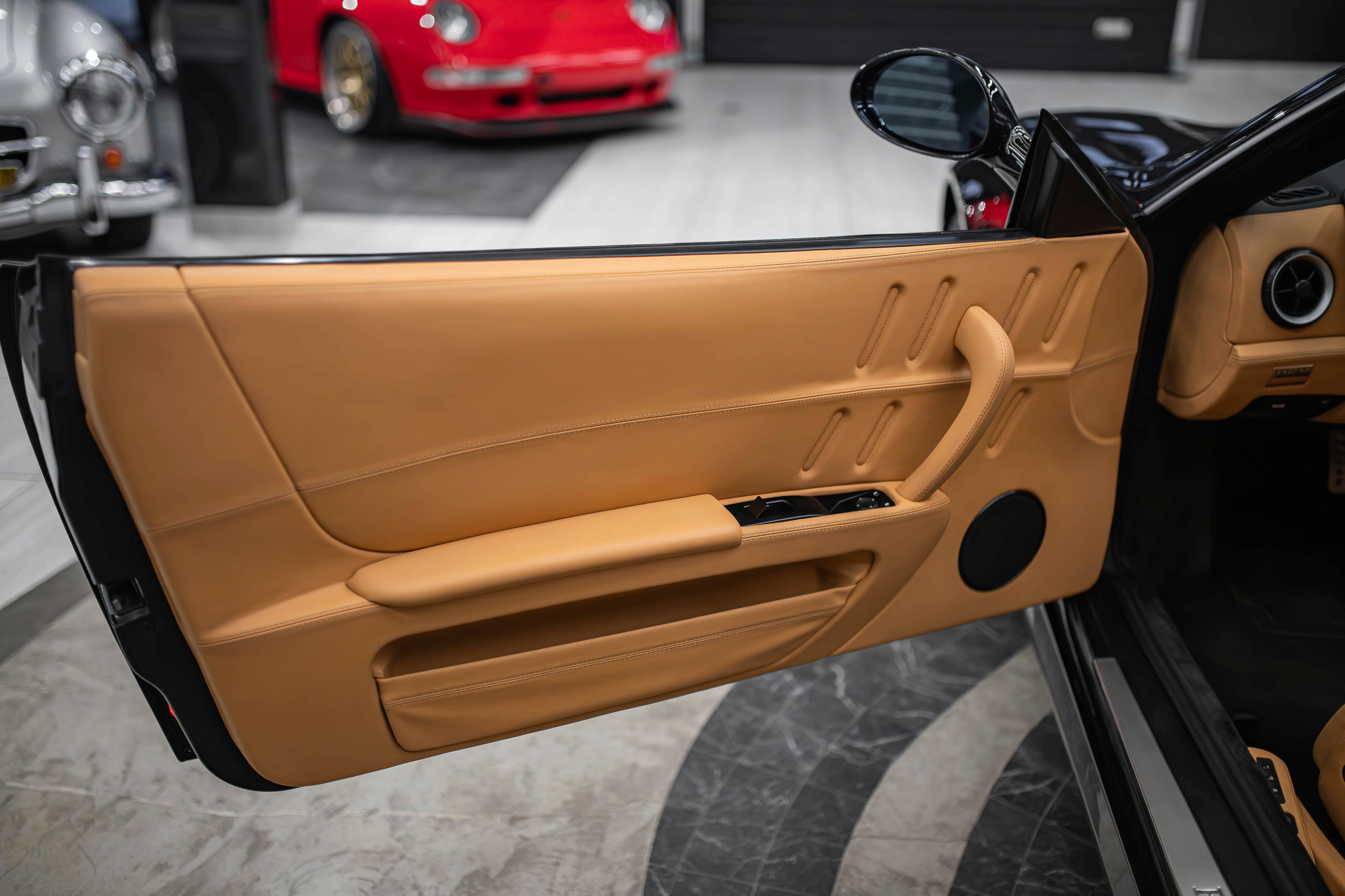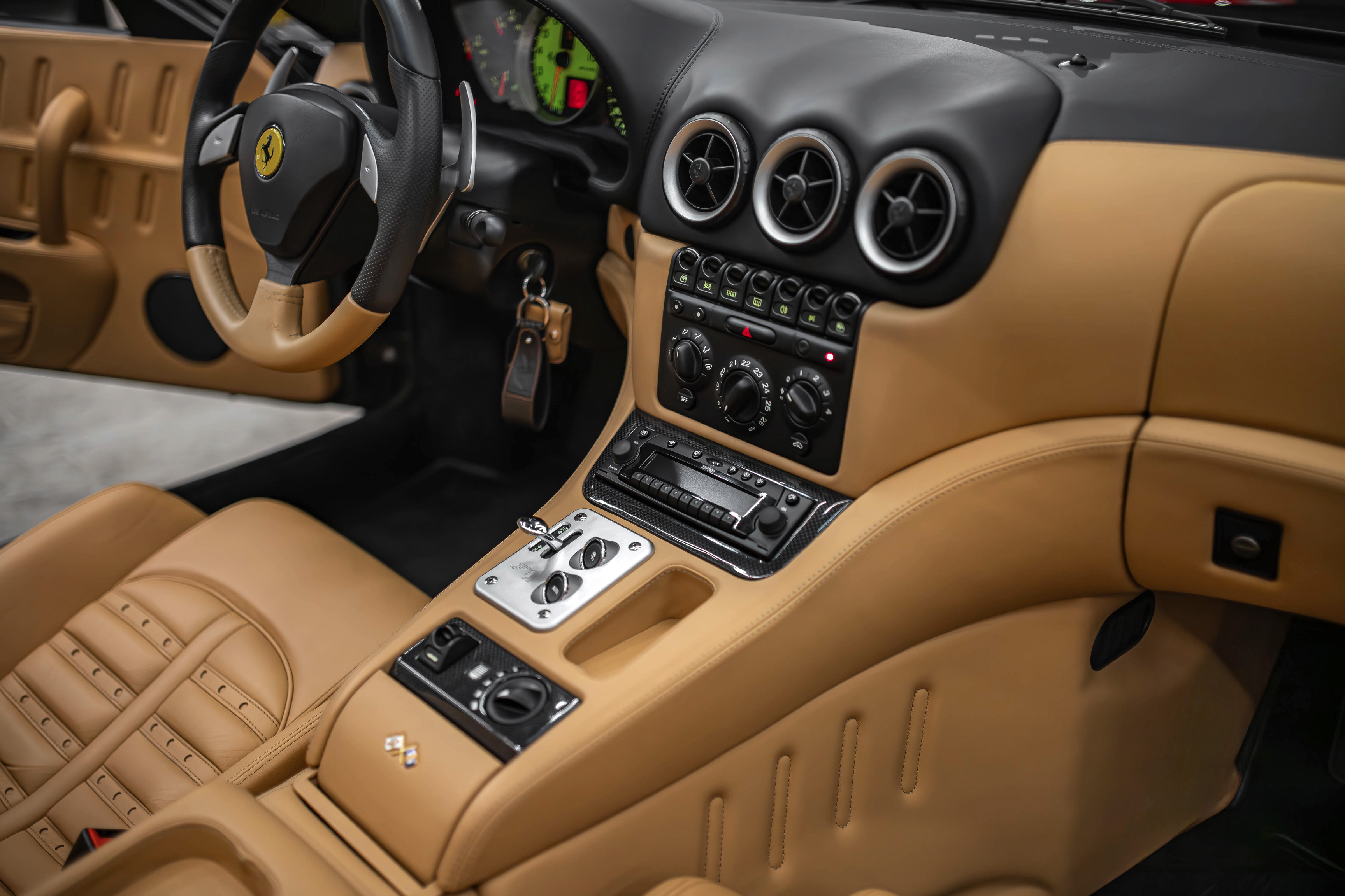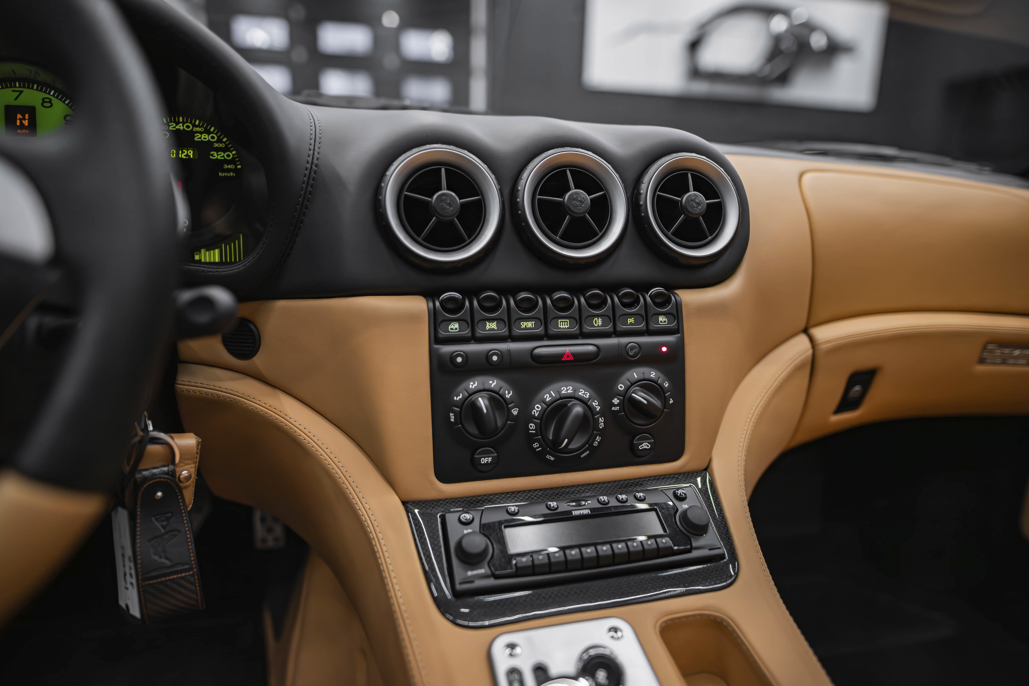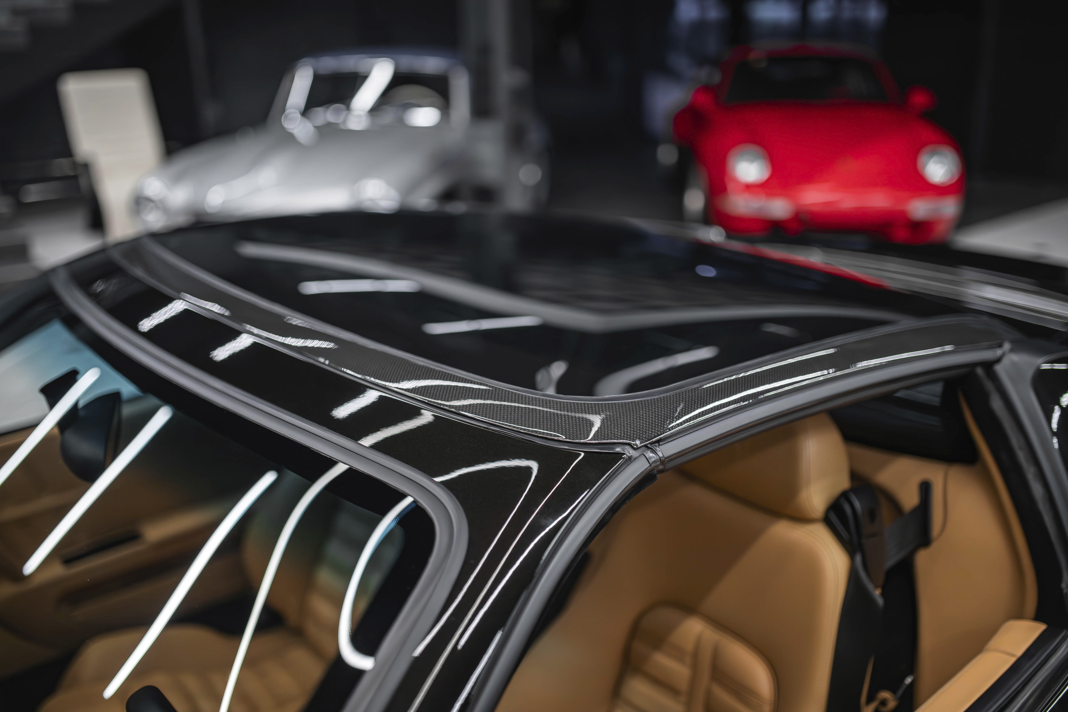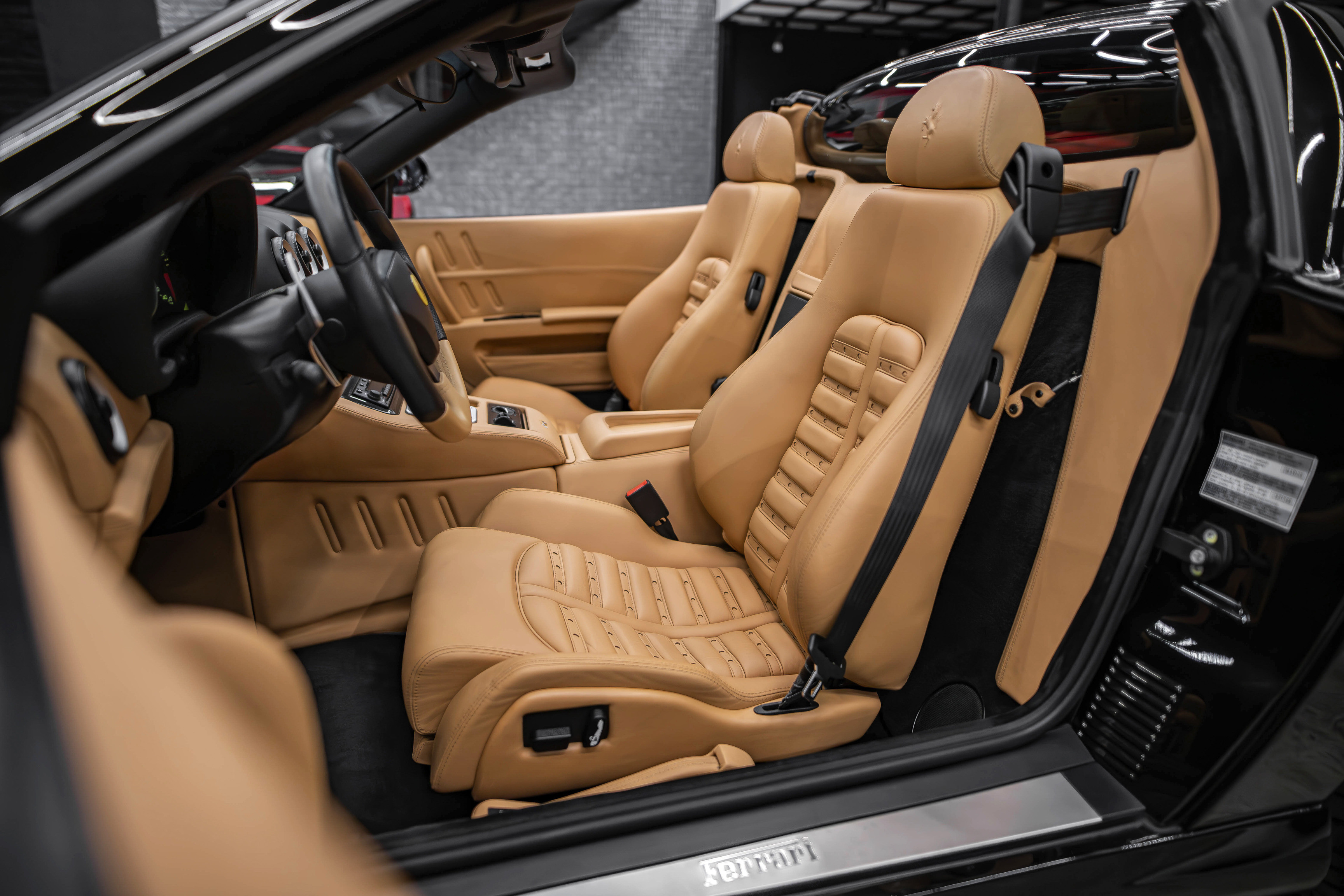 Итак, ключевой особенностью Феррари 575 Суперамерика стала прозрачная стеклянная крыша Г-образной формы, которая с помощью электропривода поворачивается на 180 градусов и ложиться обратной стороной на крышку багажника. А заднее вертикальное окошко, защищающее салон от турбулентных завихрений, затем автоматически возвращается в исходное поднятое положение. Вся процедура занимает 10,0 секунд.